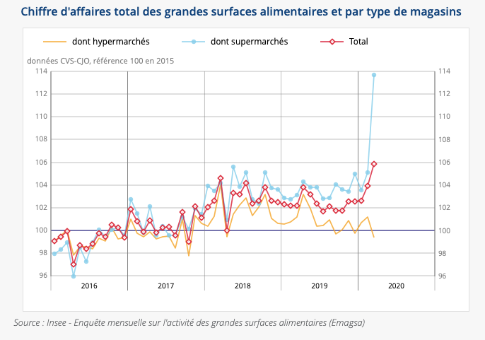 Les surfaces alimentaires, lieu de commercialisation des denrées alimentaires et autres produits de première nécessité, ont toujours démontré une excellente résilience face aux différentes crises. Les magasins de proximité attirent particulièrement les consommateurs Européens, de plus en plus adeptes du « consommer local ». Cet attrait croissant s’intensifie sans commune mesure en période de crise, comme l’épisode sanitaire du printemps 2020 où la consommation de produits alimentaire a augmenté de près de 10%(1) sur le seul mois de mars 2020, alors que la consommation de l’ensemble des biens fabriqués subissait une baisse de 40%(1).